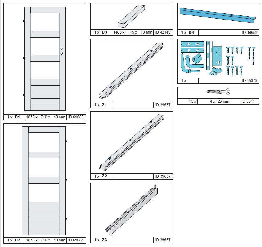 Türflügel Maße 70,5 x 176,5 cm (B x H)