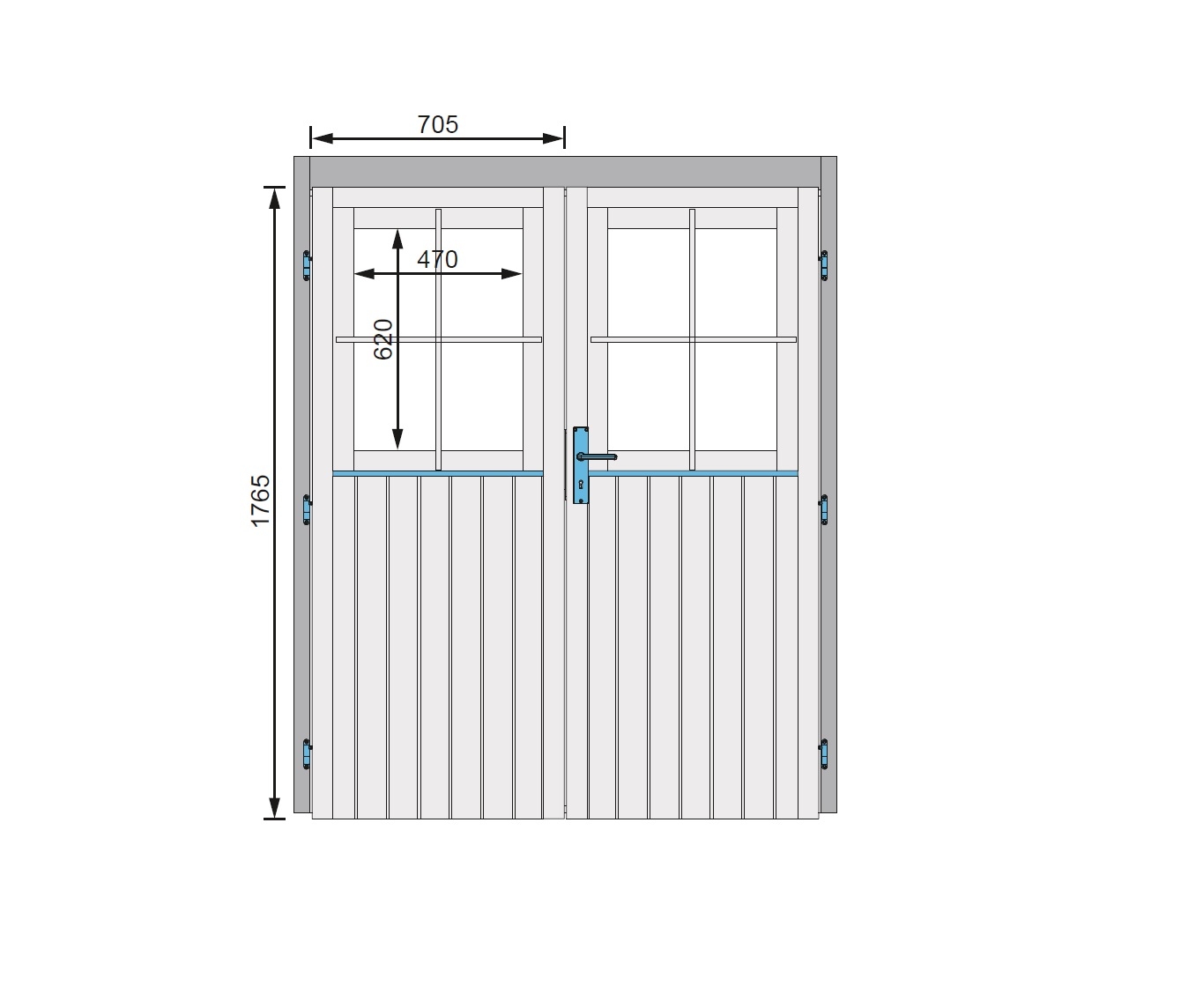 - 28mm Gartenhaustür Doppelflügeltür Komplettset