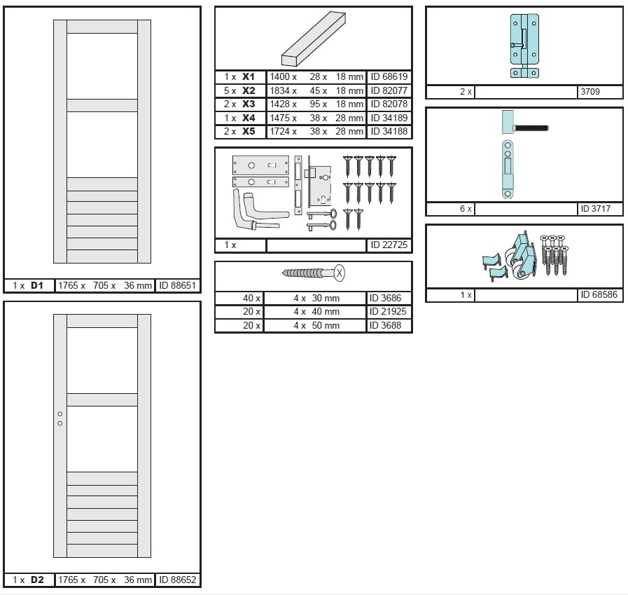 Türflügel Maße 70,5 x 176,5 cm (B x H)