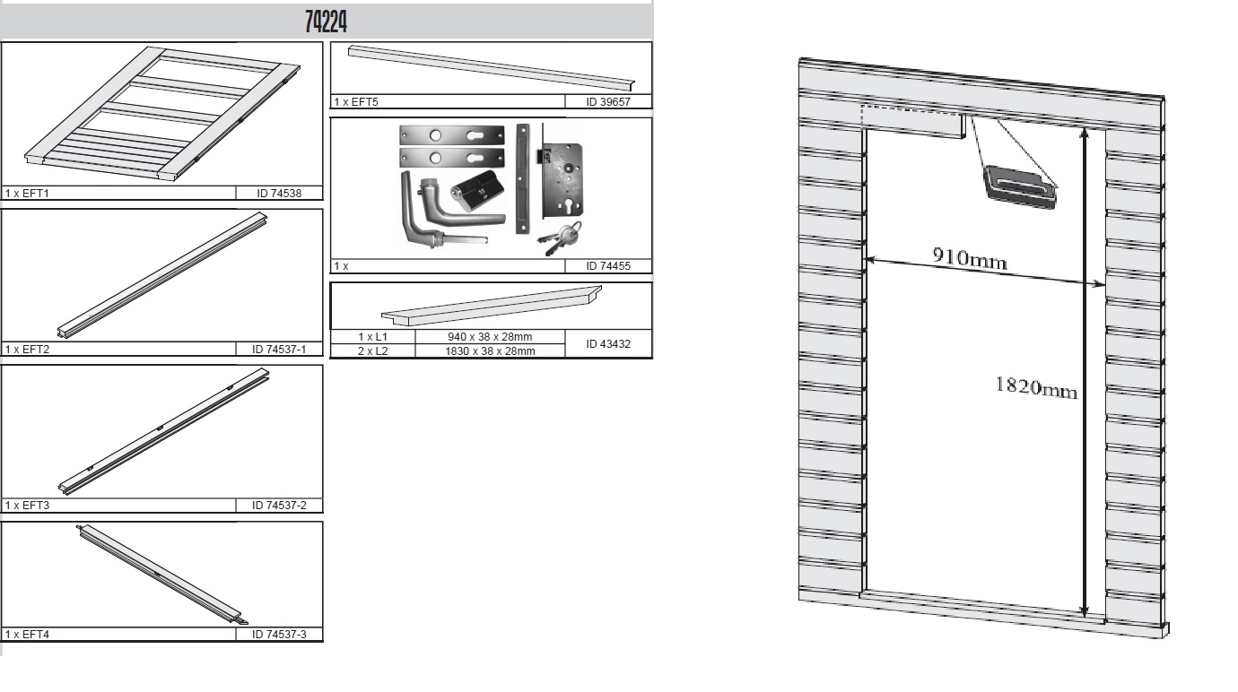 - 28/38mm Gartenhaustür Einflügeltür Komplettset