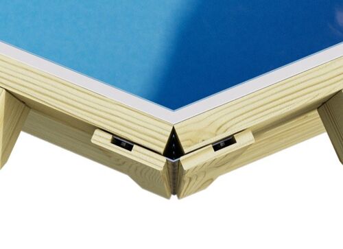 Hierbei handelt es sich um ein Konstruktionskonzept bei dem die Ecken des Pools mithilfe der Chromeline besonders geschützt werden. Dank der Chromeline-Eckverbindungen bekommt der Pool nicht nur eine moderne Optik, sondern gewinnt auch an Stabilität. Die Chromeline und die kesseldruckimprägnierten Holzblenden aus nordischer Fichte werden mit verzinkten Sechskant-Holzschrauben befestigt. Selbstverständlich verfügt auch dieser Pool über eine Einhängebiese.