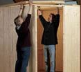 Als Nächstes werden die Wände je nach Aufbausystem montiert. Bei einer Elementbauweise werden die Wandelemente auf den Grundrahmen gesteckt und verschraubt. Die Bohlen der Massivholzsauna werden ineinander gesteckt und an den Eckleisten verschraubt. Bei einer Systemsauna werden die fertigen Wandelemente aufeinander gesteckt und an den Ecken verschraubt.