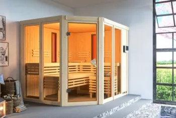 Ob sich eine Systemsauna aus 68 Millimeter starken Wandelementen mit Mineralwolldämmung oder eine Massivholzsauna aus 40 Millimeter starken massiven Vollholz-Wandelementen für Dich eignet, entnimmst Du bitte unserem Ratgeber über die verschiedenen Saunaarten. Besonders platzsparend sind die Saunakabinen mit Eckeinstieg.
