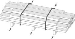 Aus Haftungsgründen muss die Ware an der Grundstücksgrenze abgelegt sein. Packen Sie ein stabiles Paket, welches Sie am besten mittels zweier bzw. dreier (je nach Warenlänge) Seile oder Gurte in gleichmäßigen Abständen bündeln. In Querrichtung unter der Ware sollten sich die ursprünglichen Querunterleger ebenfalls in gleichmäßigen Abständen befinden.