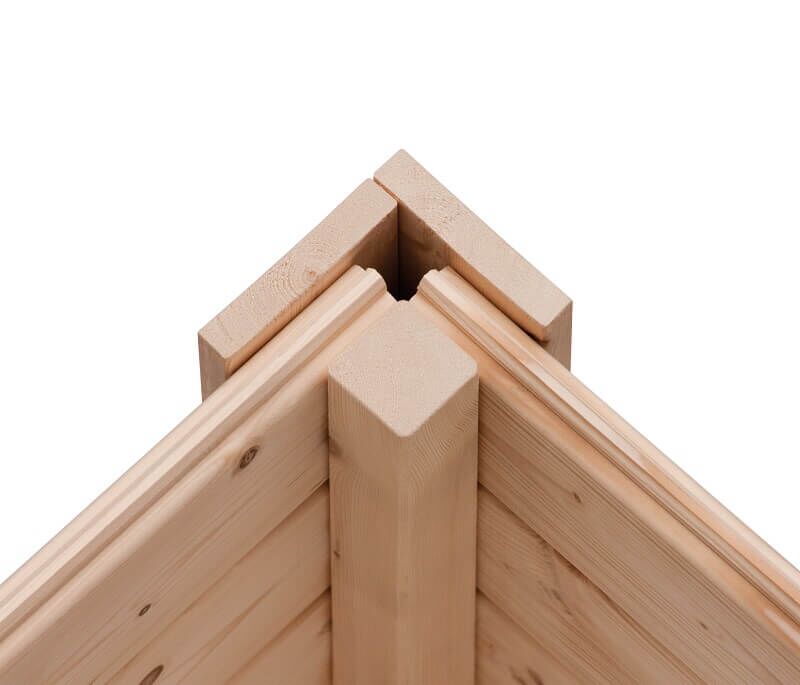 Unter den Gartenhaus-Bauweisen ist die Blockbohlenbauweise sehr beliebt. Die auch als Blockhaus bezeichneten Gartenhäuser wirken durch die an den Ecken überstehenden Wandbohlen sehr charmant. Die einzelnen gehobelten Bohlen aus nordischer Fichte können sich durch das patentierte Sechs-Plus-Eckverbindungssystem hervorragend anpassen. Holz ist ein natürlicher Rohstoff, der sich je nach Witterung ausdehnt oder schrumpft. Unter den verschiedenen Gartenhausbauweisen lässt dieses System dem Holz die meiste Freiheit, da nur wenige Schrauben benötigt werden. Davon profitierst Du auch bei der Montage, denn das Stecken der Seitenwände geht schnell und einfach voran.