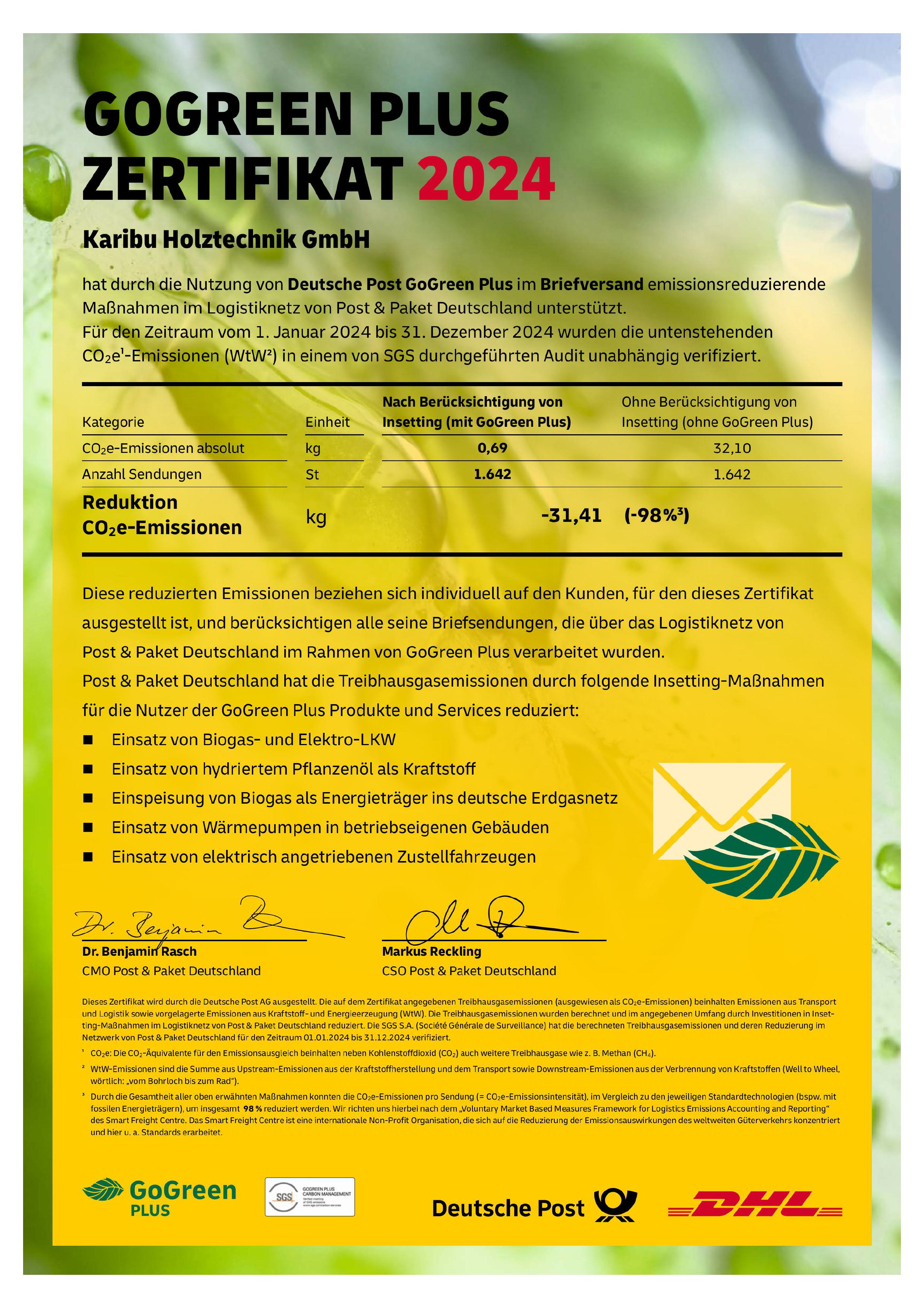 Klicke hier für das vollständige DHL Zertifikat.